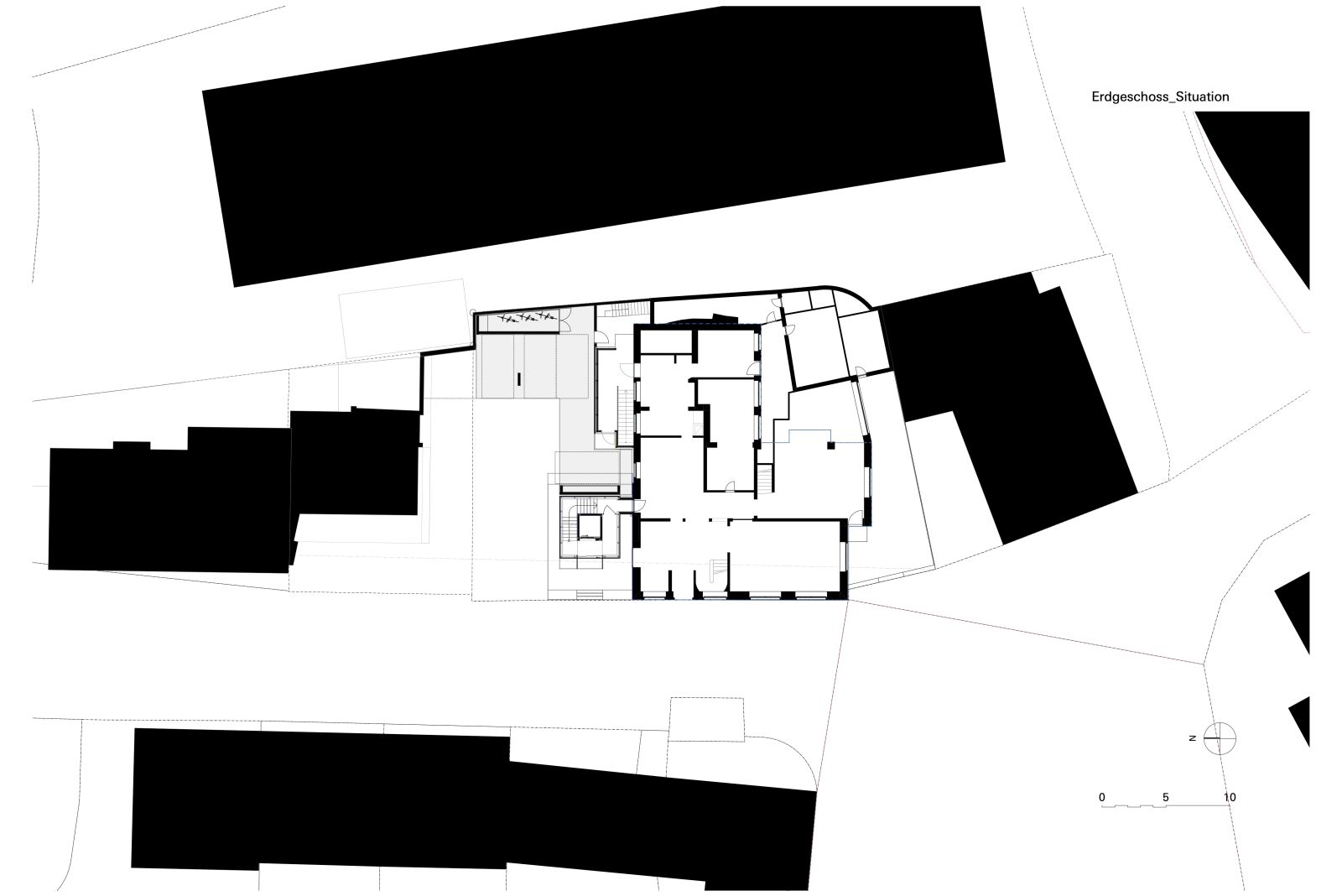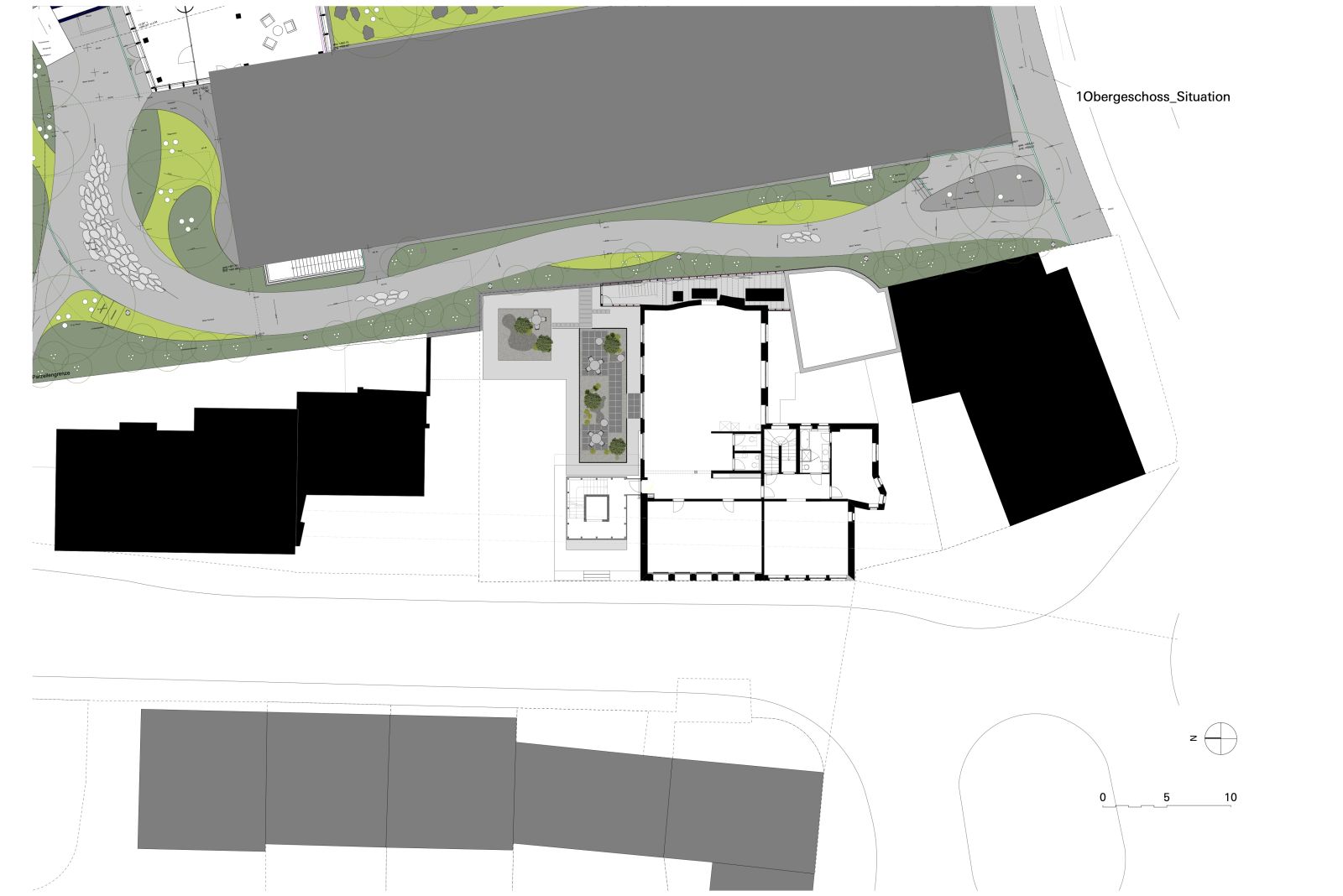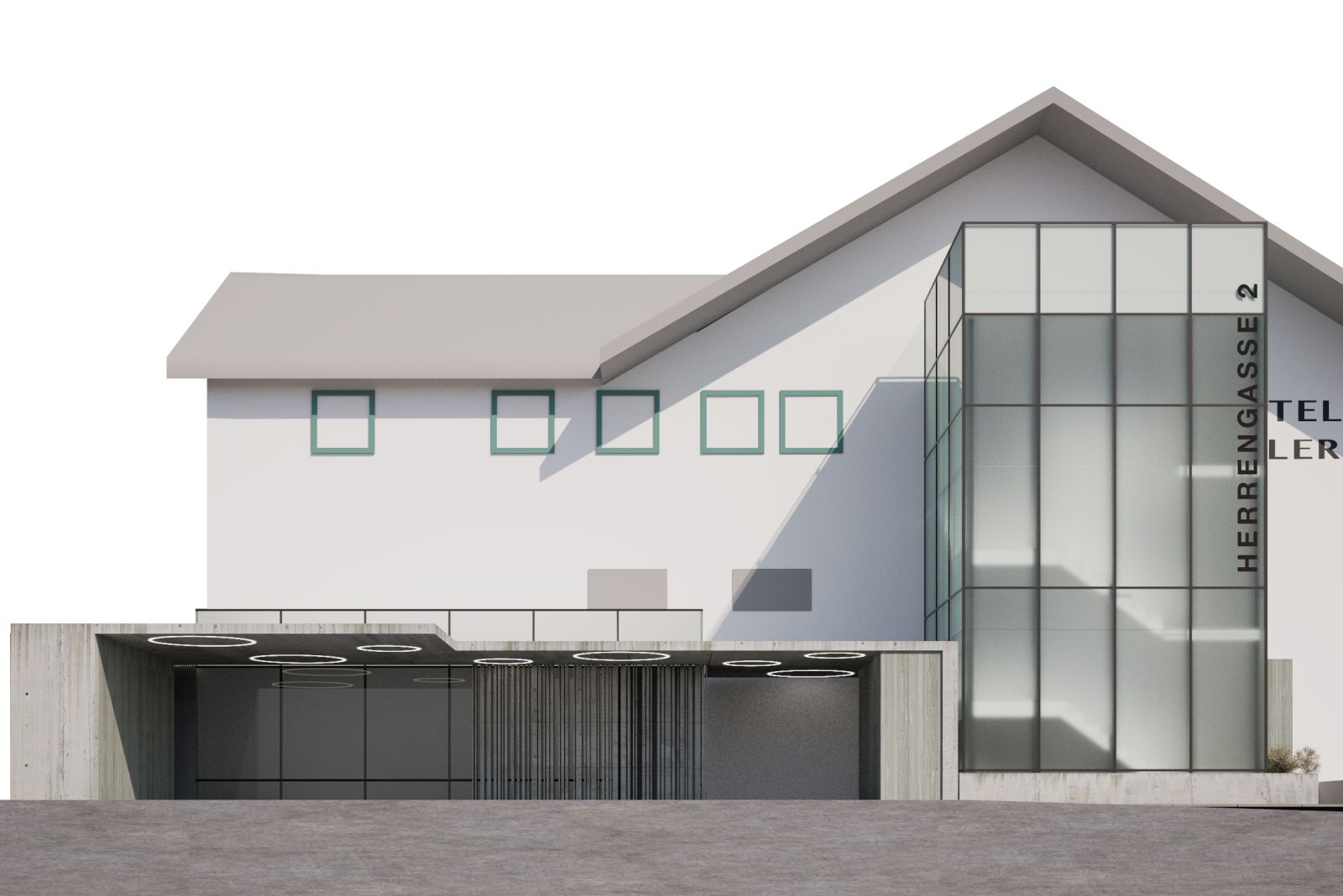 Zur Hofaufwertung zwischen dem Greberhaus und des Restaurant Adler wird ein Carport mit Dachgärten entwickelt.