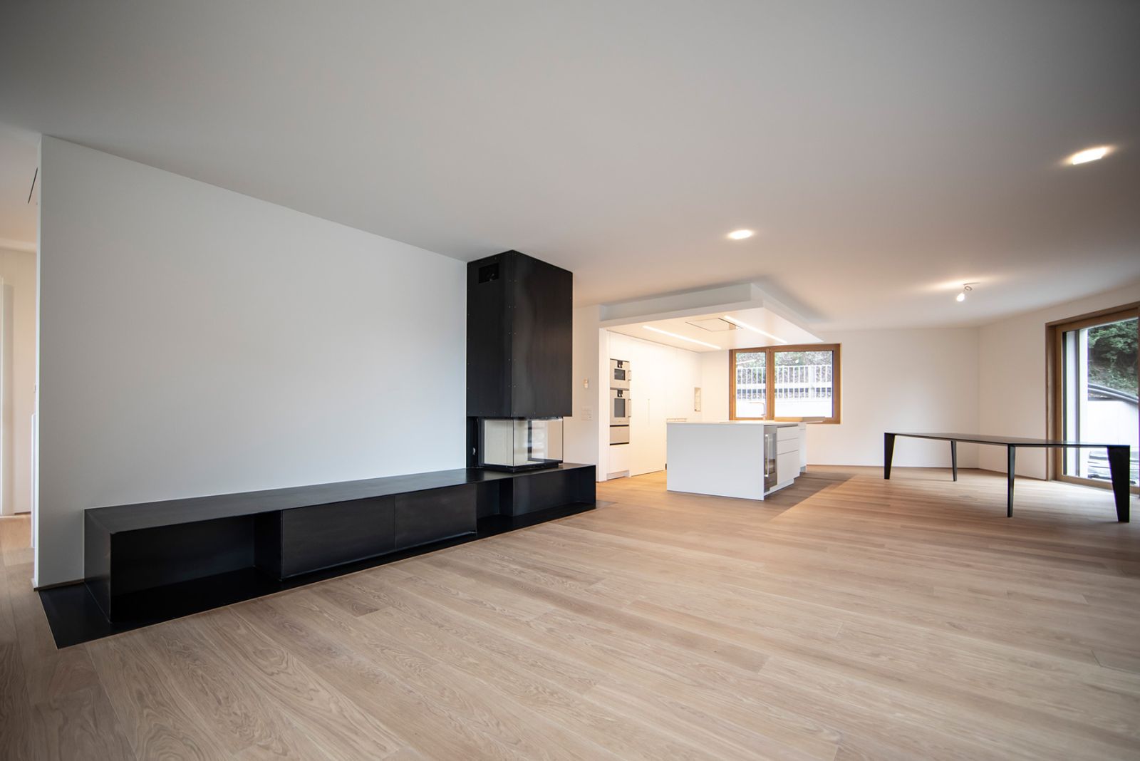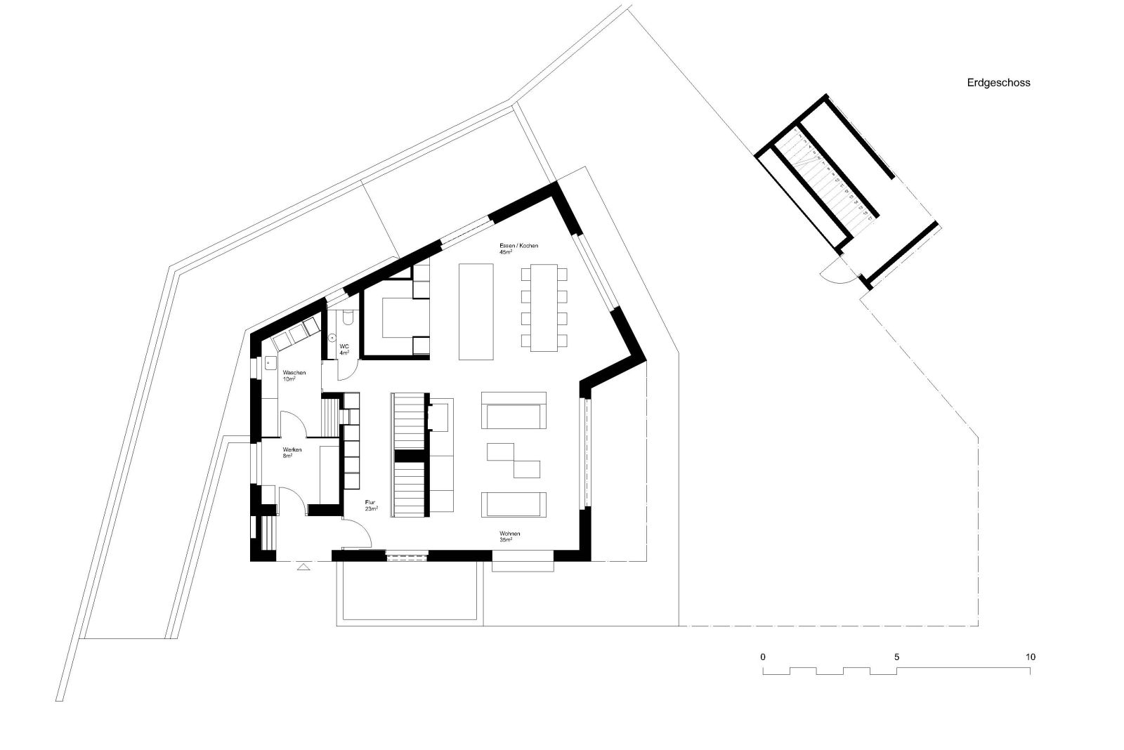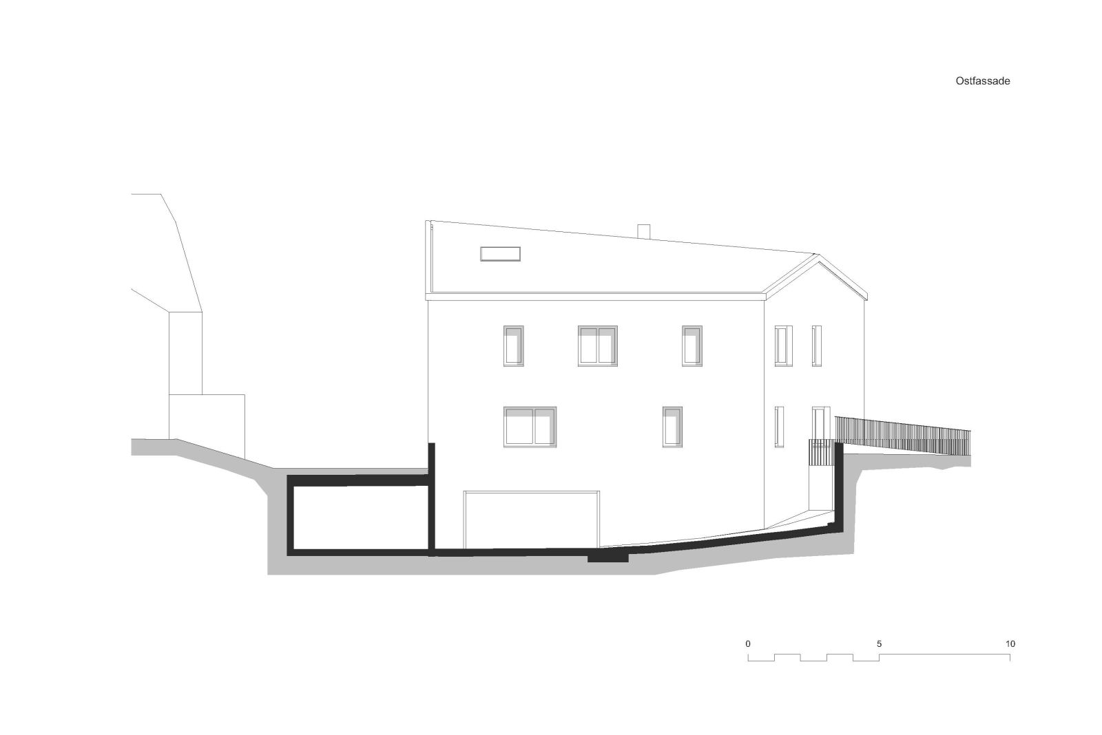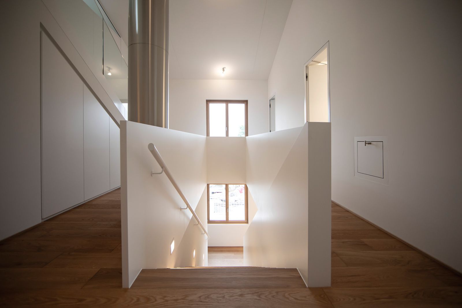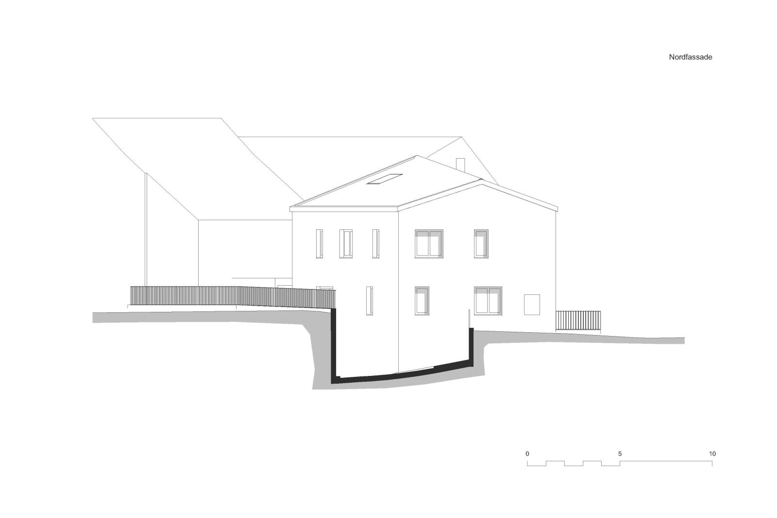 In enger Zusammenarbeit mit den Behörden konnte eine Form gefunden werden, welche der Geschichte des Ortes gerecht wird und trotzdem eine moderne und zeitlose Sprache spricht. Der monolithische Körper mit seinem besonderen Volumen steht selbstsicher an seinem Platz. Die Gebäudehülle in Einsteinmauerwerk unterstreicht die Bauaufgabe auch in der Konstruktion. Das grosszügige Raumprogramm wird unterstrichen im hochwertigen Innenausbau und der Materialwahl des gesamten Projektes.