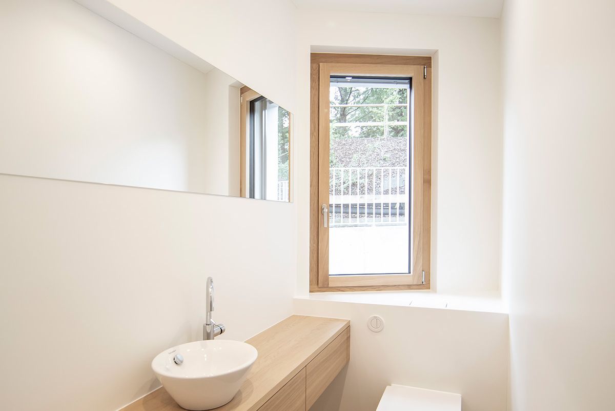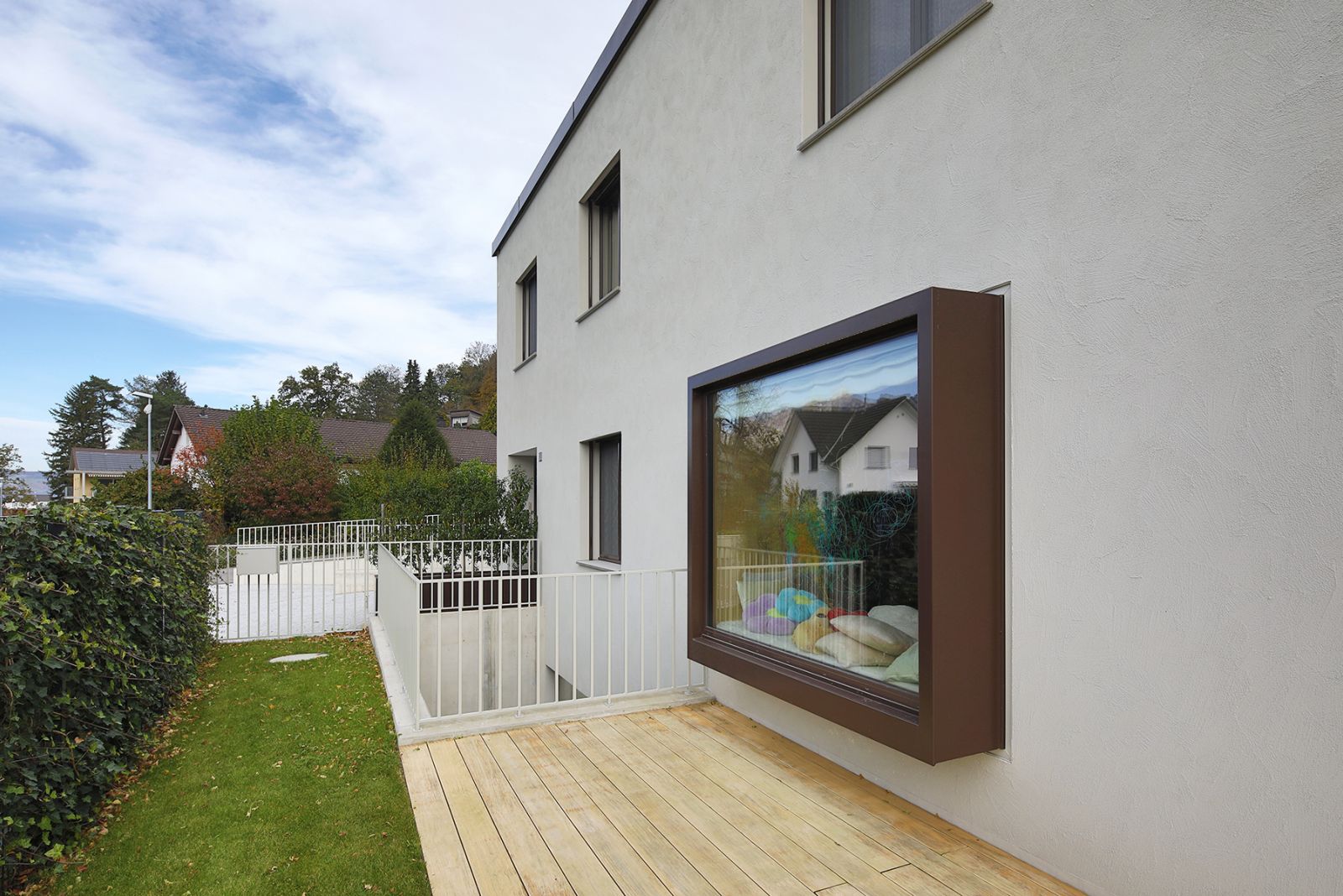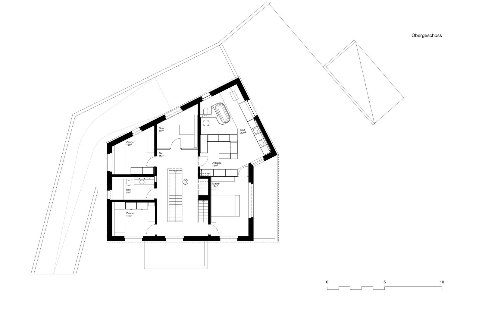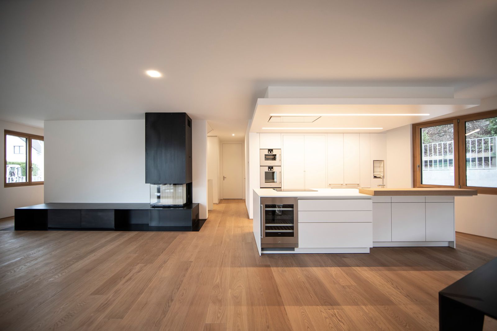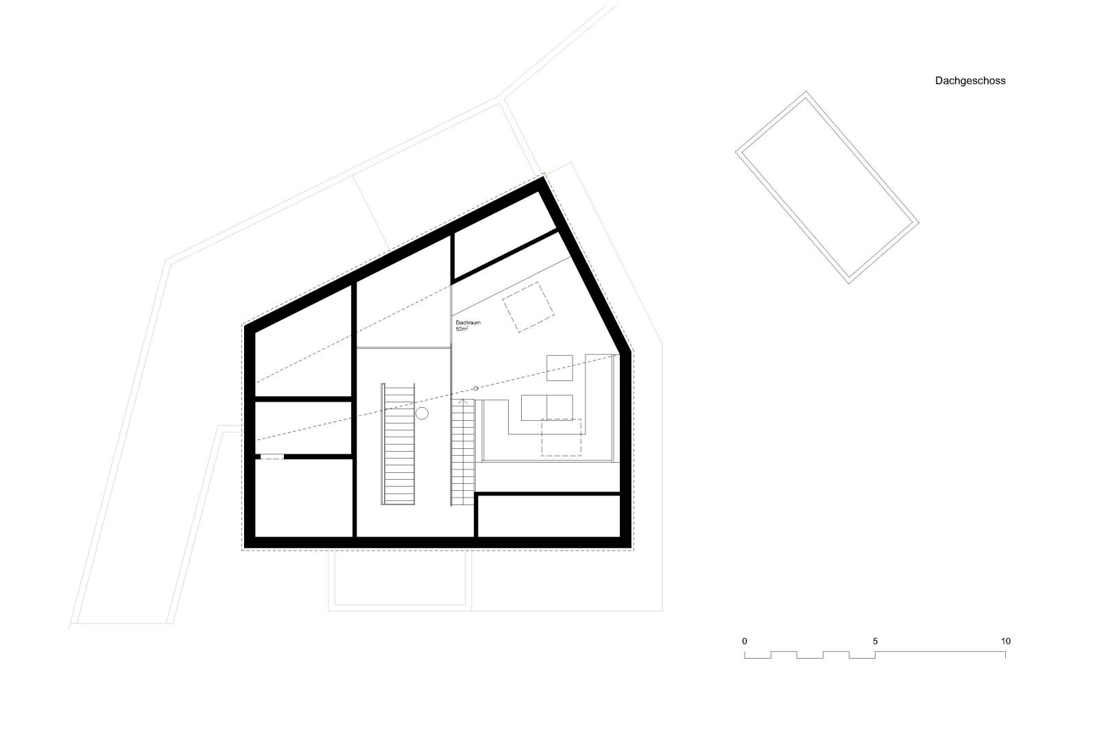 In enger Zusammenarbeit mit den Behörden konnte eine Form gefunden werden, welche der Geschichte des Ortes gerecht wird und trotzdem eine moderne und zeitlose Sprache spricht. Der monolithische Körper mit seinem besonderen Volumen steht selbstsicher an seinem Platz. Die Gebäudehülle in Einsteinmauerwerk unterstreicht die Bauaufgabe auch in der Konstruktion. Das grosszügige Raumprogramm wird unterstrichen im hochwertigen Innenausbau und der Materialwahl des gesamten Projektes.
