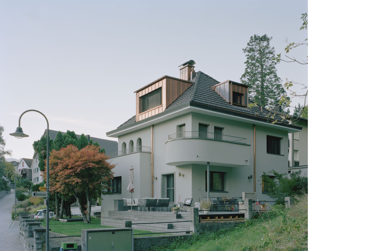 Die neuen Anbauten gliedern sich der geschichtsträchtigen Villa aus dem letzten Jahrhundert unter und heben deren architektonischen Wert hervor. Die Sanierung verfolgt das Ziel, den ursprünglichen Charakter des Gebäudes zu bewahren und gleichzeitig eine zeitgemässe Wohnsituation zu schaffen. Sämtliche Eingriffe und Entscheidungen orientieren sich am architektonischen Ausdruck der Villa und tragen deren Besonderheiten Rechnung.