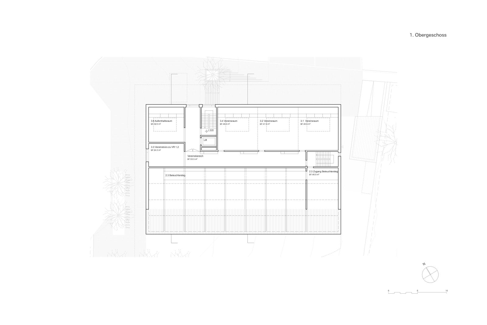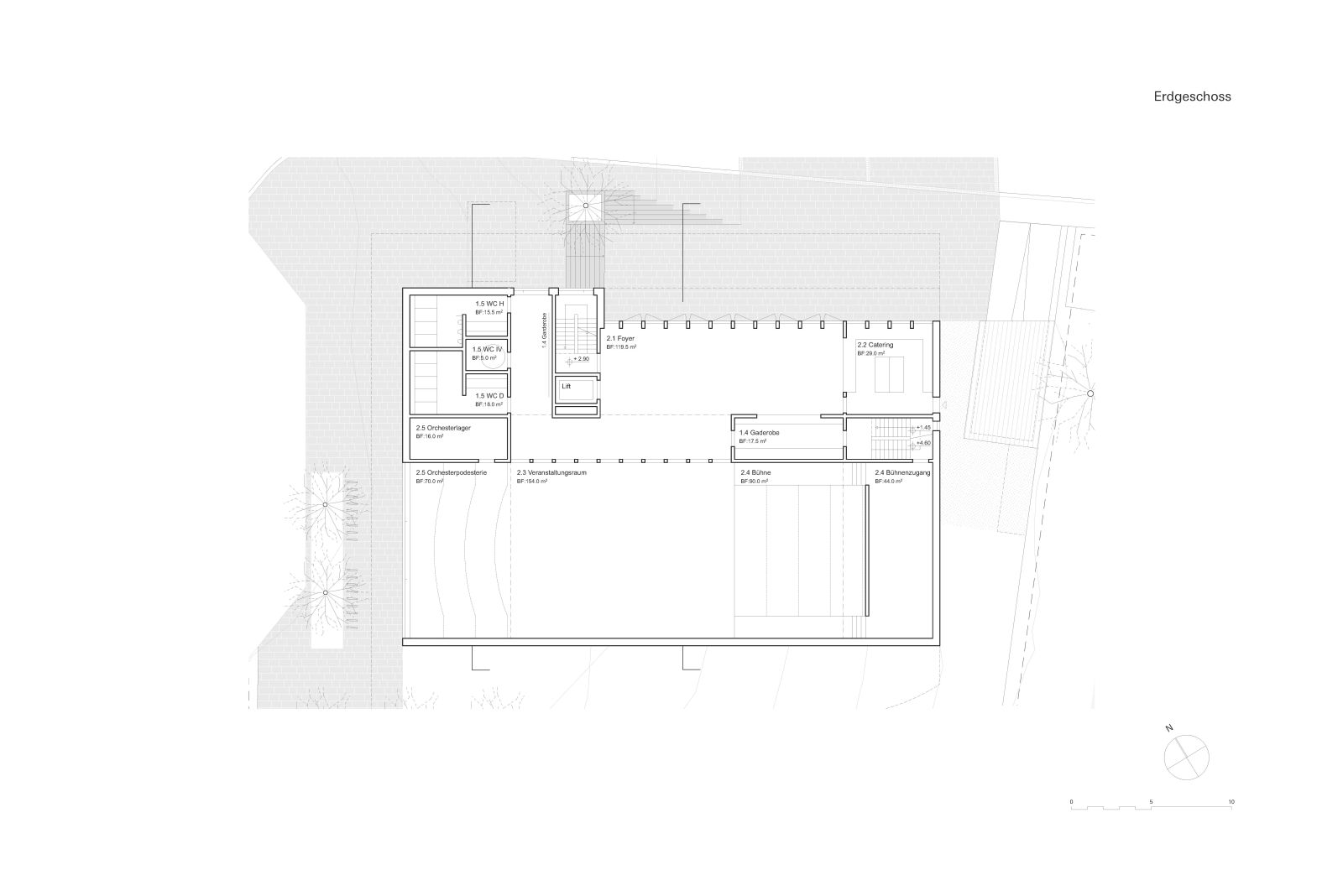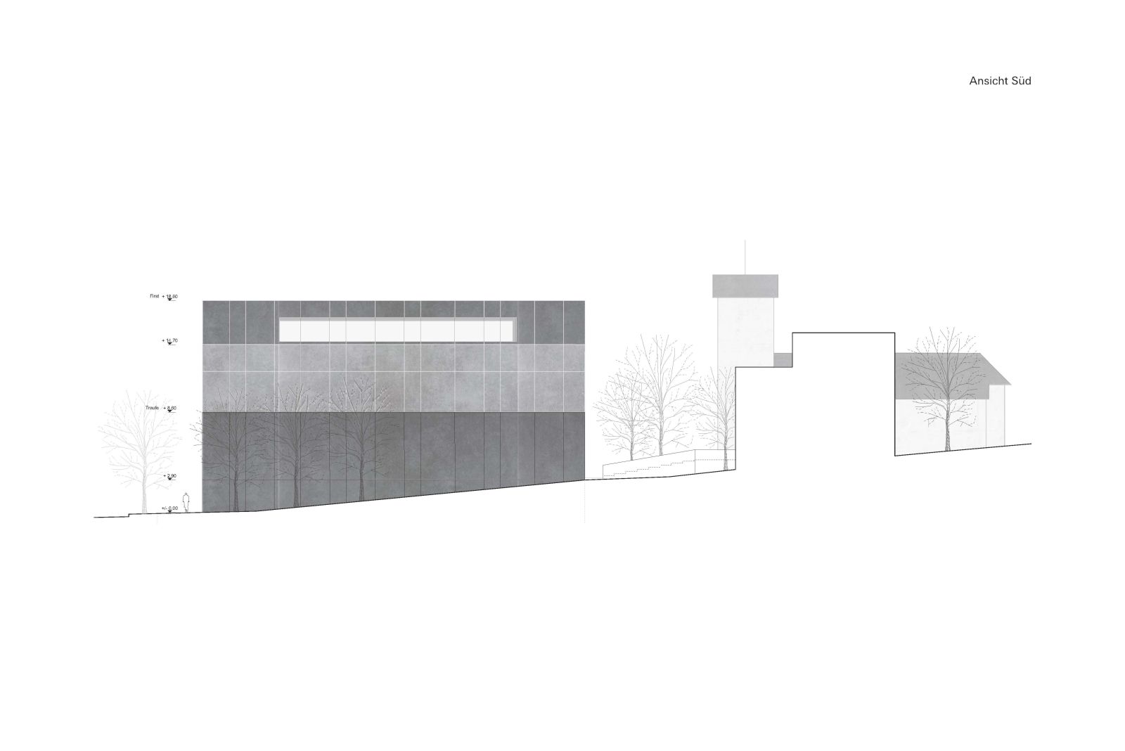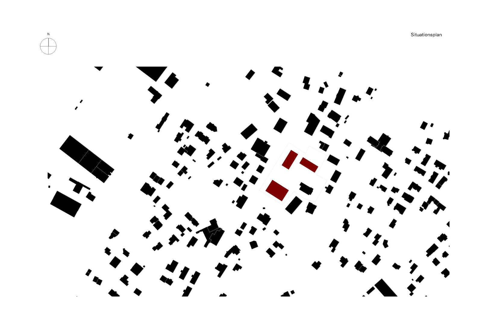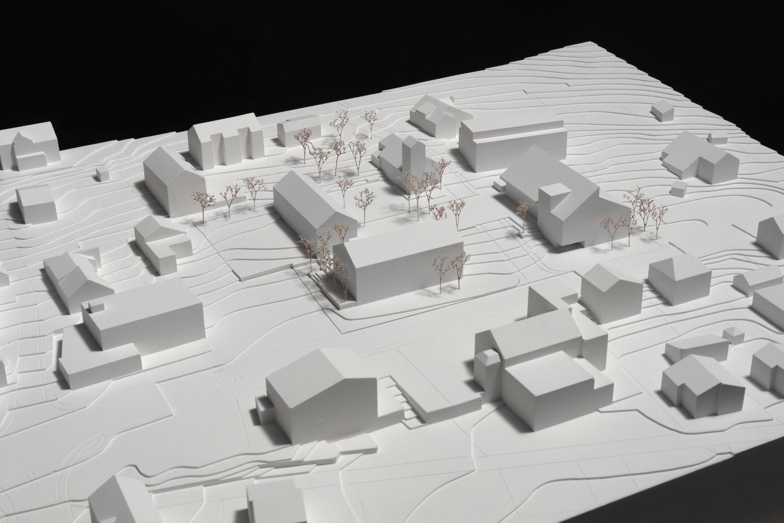 Die Raumkanten erzeugen eine spannungsvolle Entwicklung des Strassenraums und stellen die St. Sebastians Kirche frei. Die Kirche wird durch die neue Bebauung eingerahmt und bleibt das Herz der Siedlung. Durch Dachform und Materialität integriert sich das Projekt wie selbstverständlich in die bestehende Dorfstruktur. Das Zusammenbinden des die Kirche umspielenden Zentrumsplatzes mit Mehrfunktionsfläche und dem Platzbereich Begegenungszentrum gibt dem Dorf eine neue, grosszügige Mitte. Mit einem Höhenausgleich in der Sebastianstrasse gelingt es, diese beiden Platzseiten auch räumlich zu verknüpfen, was mit dem durchlaufenden Belagsmuster zusätzlich unterstützt wird. Um diese Abflachung im Übergangsbereich zu ermöglichen, wird die Steigung der Sebastianstrasse zwischen Einlenker Churerstrasse und Platzübergang etwas angepasst.