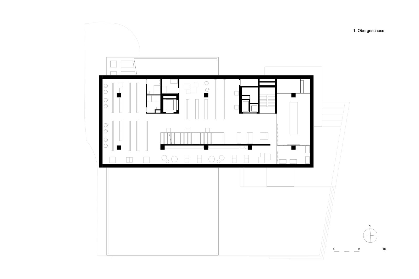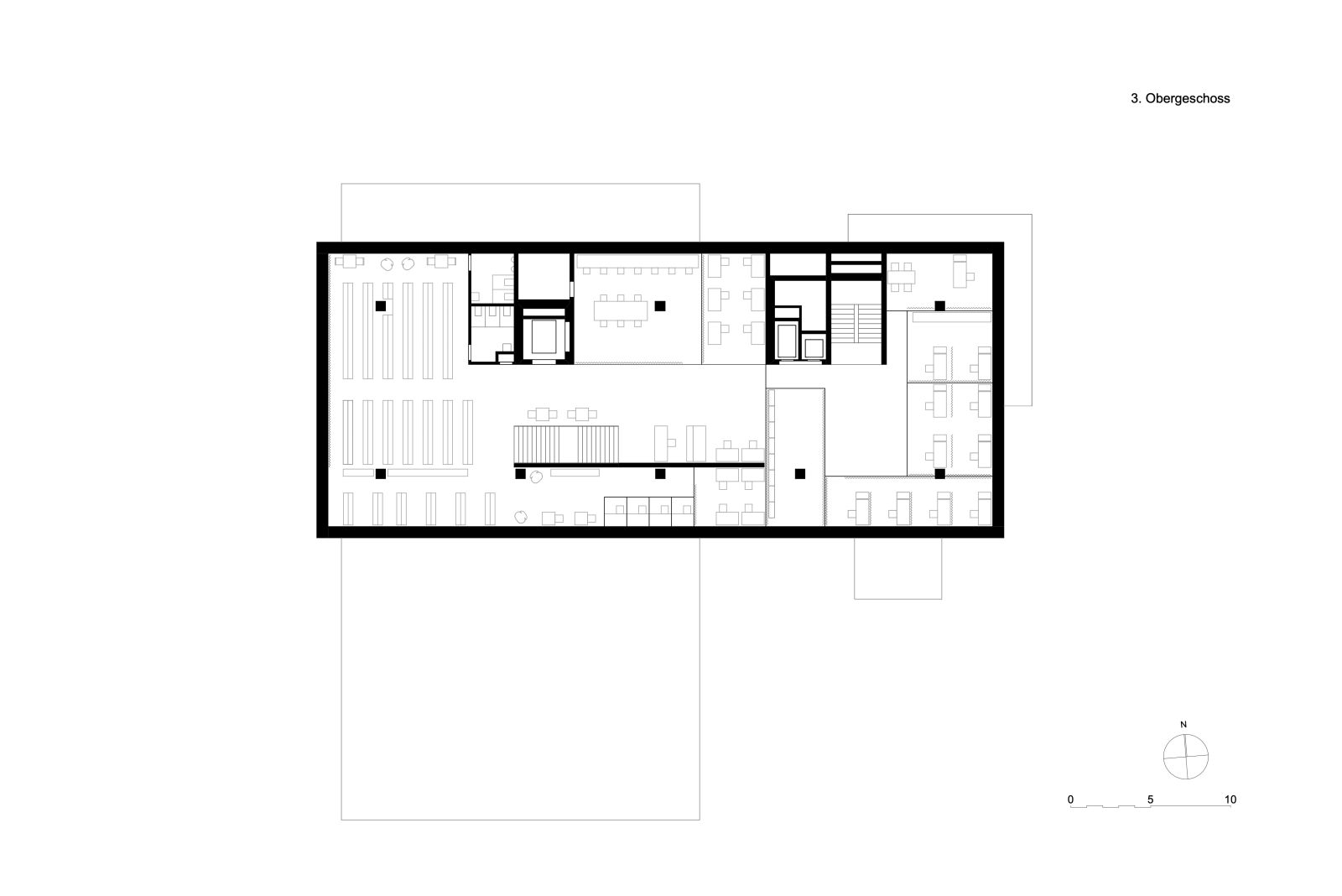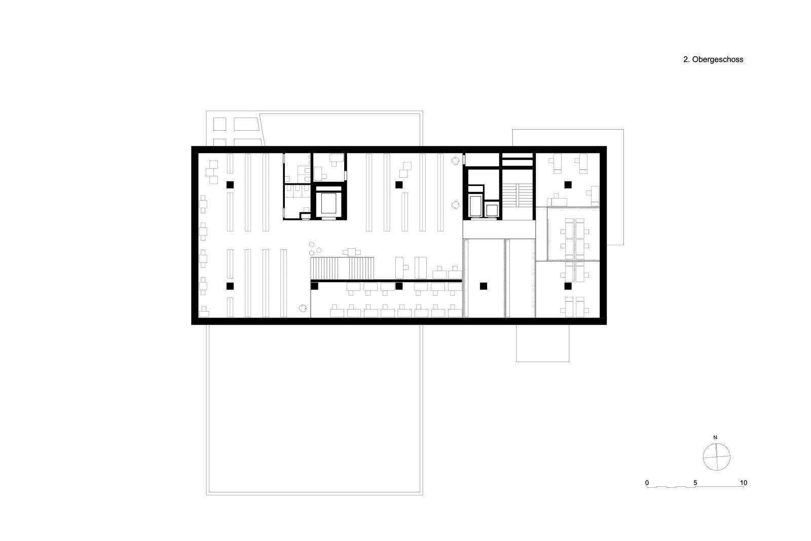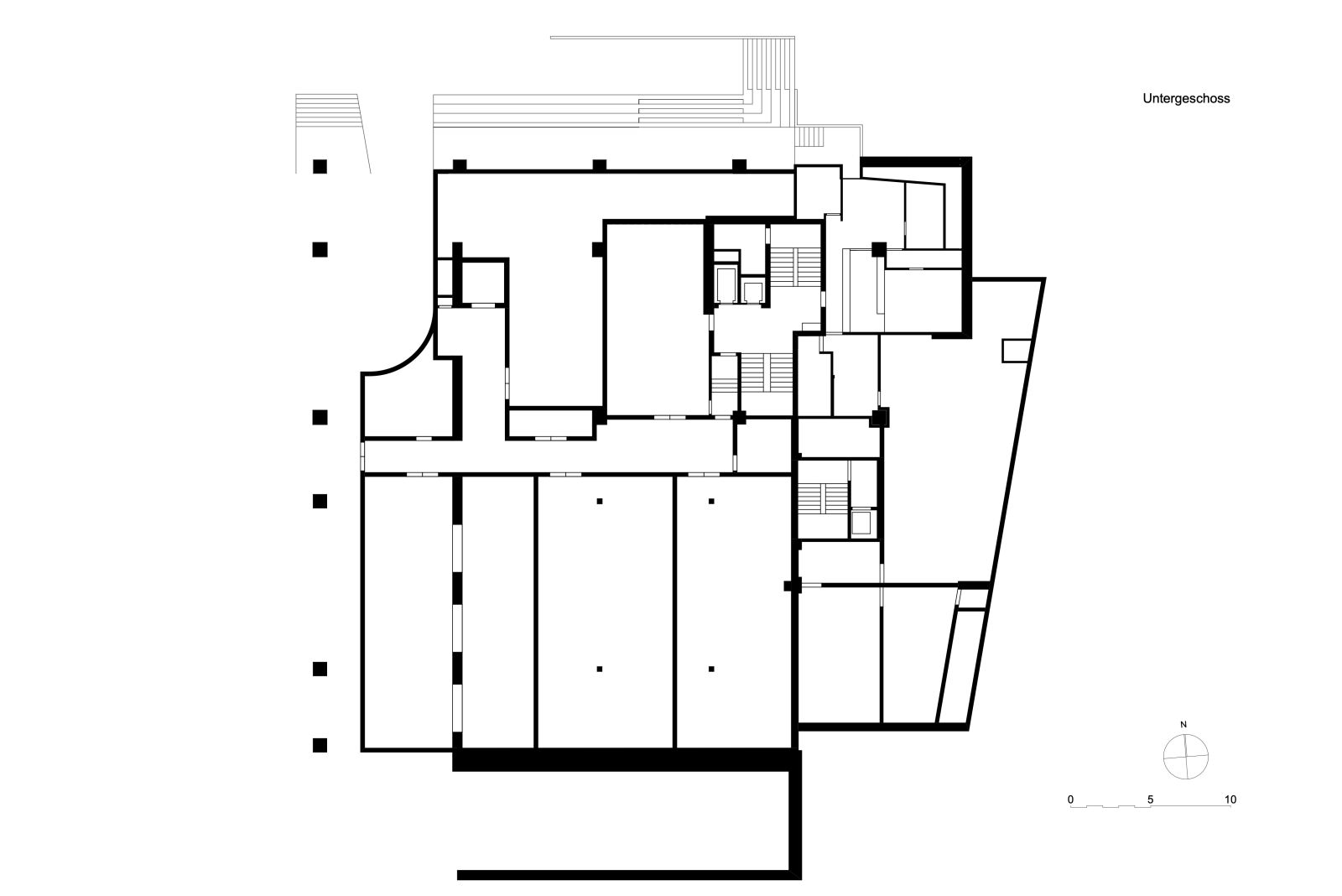 Die unglaublich starke visuelle Kraft des Rohbaus wird auf alten Baustellenfotos deutlich. Klare einfache Strukturen und eine schlichte Formensprache machen diese Kraft aus. Zu dieser soll mit dem Projektentwurf zurückgefunden werden. Der Bestand wird auf seine Grundstruktur rückgebaut. Die visuell prägende Plattenstruktur des Rohbaus soll nun deutlich sichtbar werden. Die Bänder der Geschossdecken sowie die Stützen im Innern sind formgebend für das neue Gebäude und geben ihm seine dynamische Wirkung. Durch eine Erweiterung der vertikalen Struktur wird das Konzept des Bestandes gestärkt. Die Fassade wird in reduzierter Art neu gestaltet und energetisch in das Haustechnikkonzept einbezogen. Die Treppenkerne bleiben erhalten und werden räumlich ergänzt. Einfache, klare Grundstrukturen die durch eine flexible Möblierung bespielt werden können. Dadurch kann der Grundriss möglichst frei gestaltet werden und ist für zukünftige Änderungen vorbereitet.