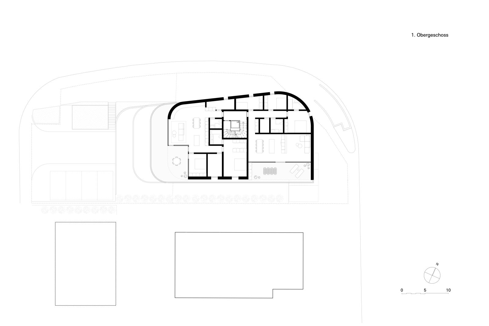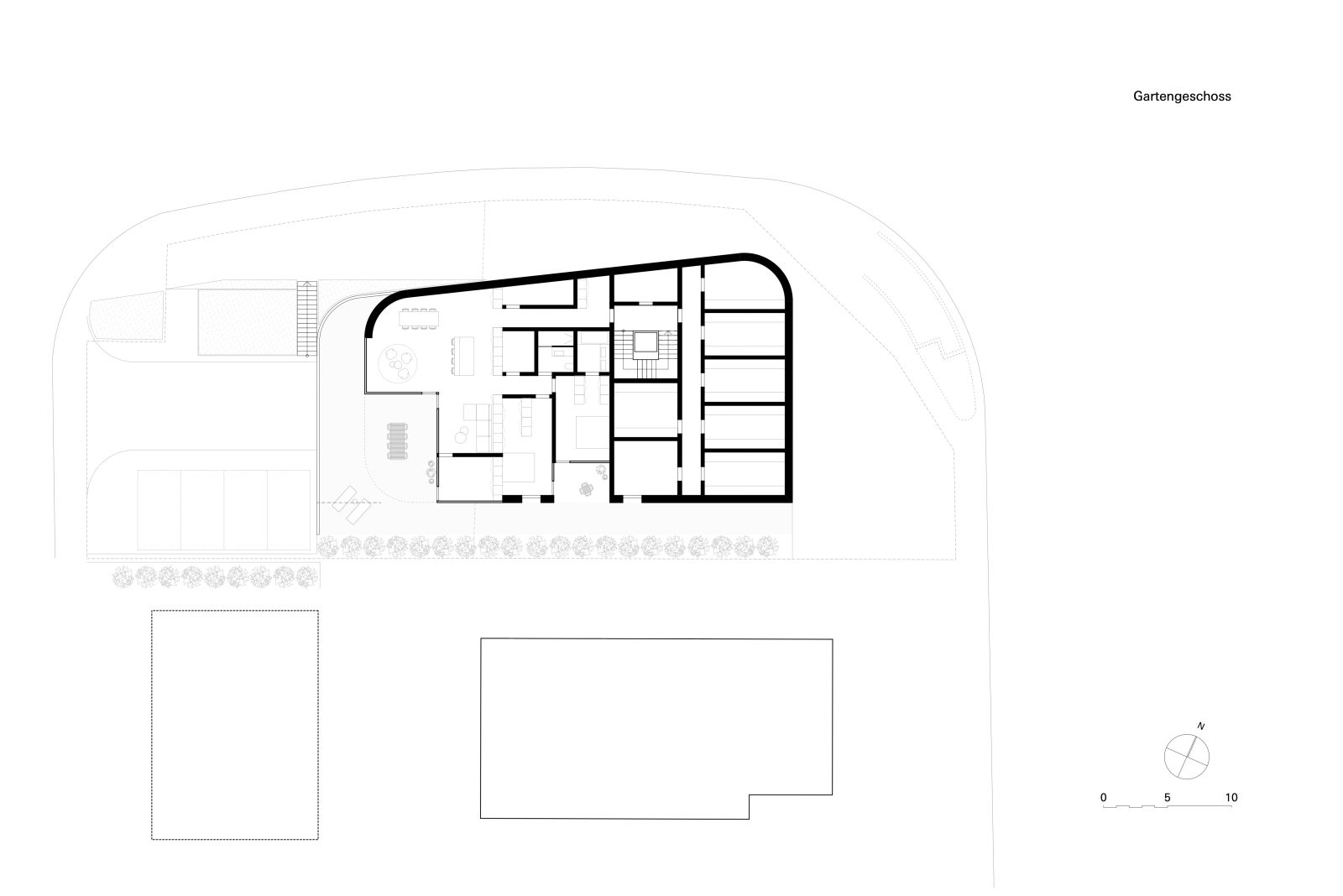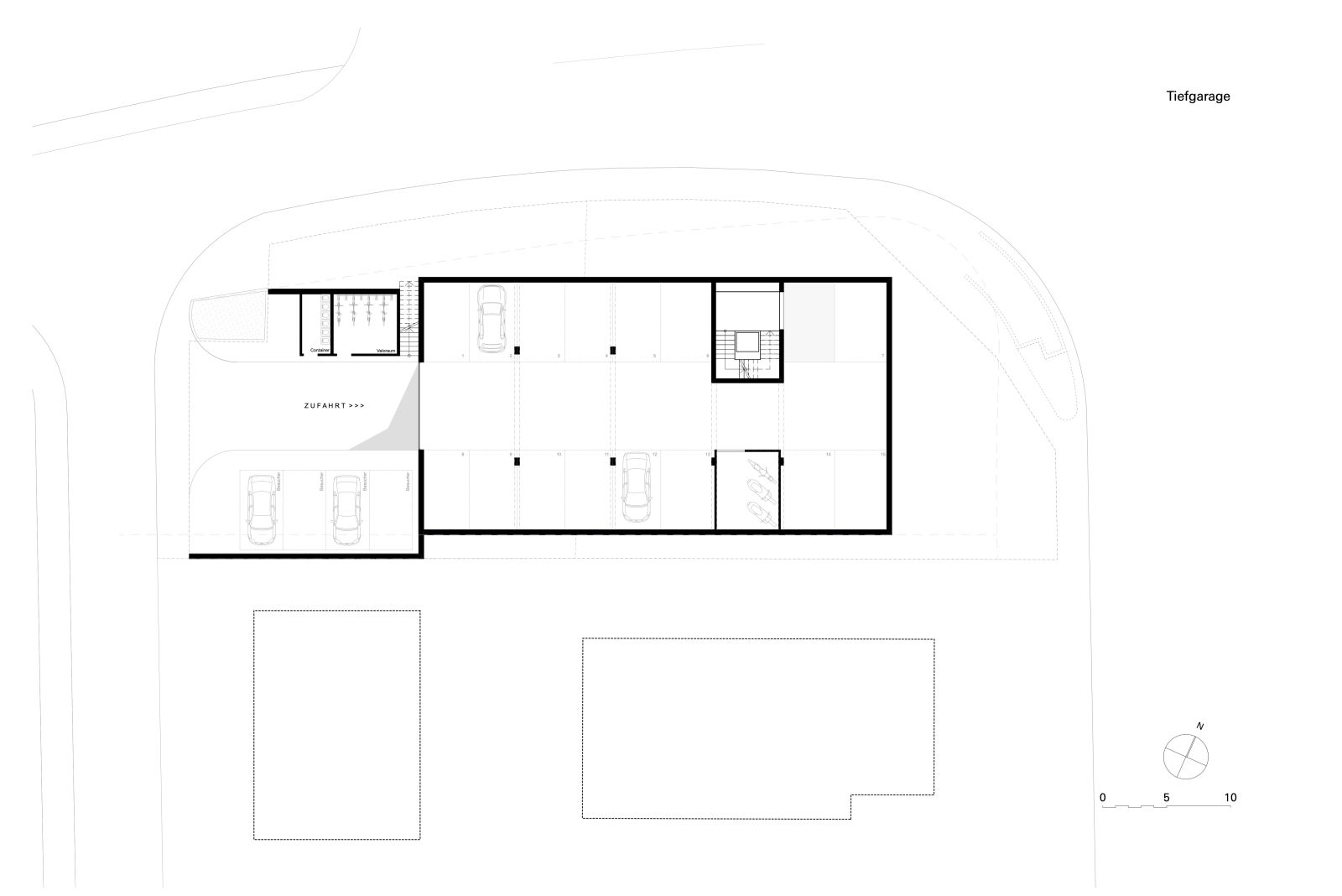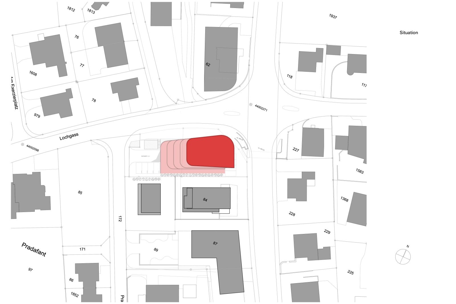 Durch die Stetzung des Baukörpers entlang der Lochgasse mit der Fussgängerunterführung im Oberen Teil der Parzelle wird die Städtebaulich gewichtung des Ortes betont . Ebenso wird das Grundstück durch die Tiefgarage mehrheitlilch vom Verkehr befreit. Eine zentrale Erschliessung in kombination mit den organischen Elementen führt zu individuell spannenden Grundrissen. Die Wohnungen sind offen gestaltet und lassen trotz klaren Zonen eine mehrheitlich freie Ausführung der Grundrisse zu.