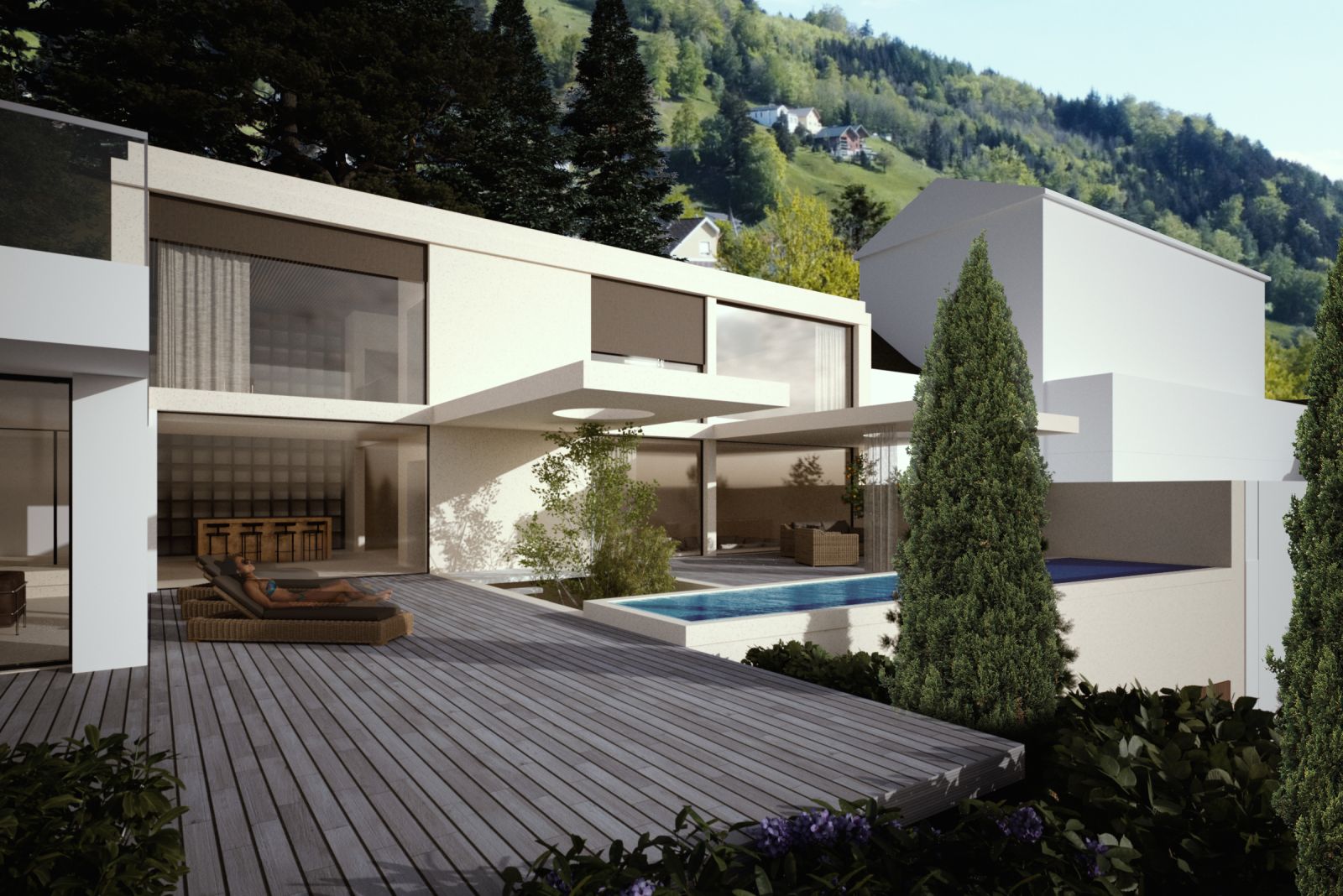 Es wurde ein Gebäude konzipiert, in welchem beide Himmelsrichtungen Ost Schlosswald als auch West Ried von gleichwertiger Bedeutung sind. Neben dem Konstruktionsraster wurden Ausblicke und Himmelsrichtungen nicht nur als räumliche Orientierung, sondern auch programmatisch, energetisch und architektonisch in die Gestaltung integriert. Der Ost-West Bezug erzeugt gleichwertige Wohnqualitäten und ermöglicht eine natürliche Querlüftung.